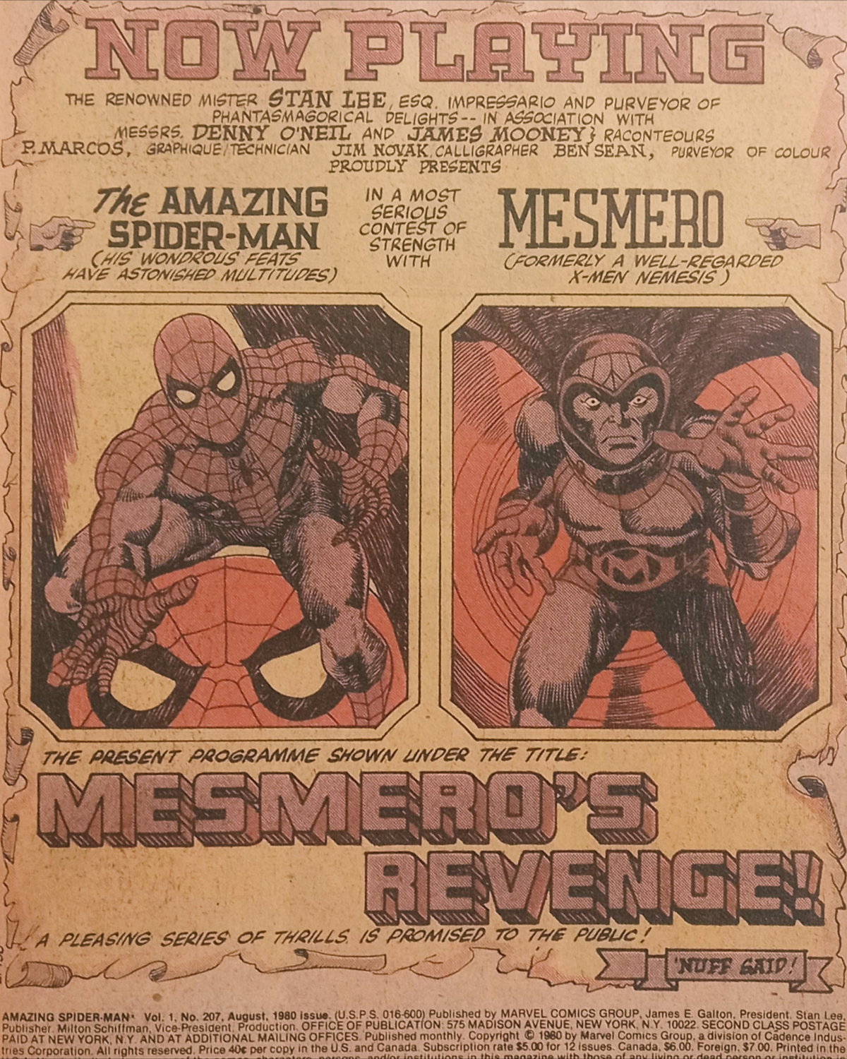 Por Denny O'Neil y Jim Mooney, Spidey vs Mesmero, viejo enemigo de los X-Men.