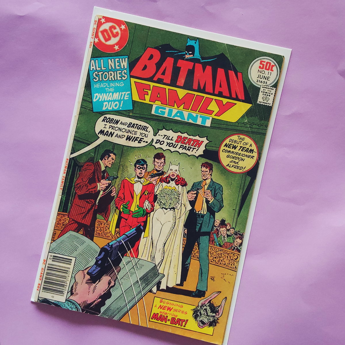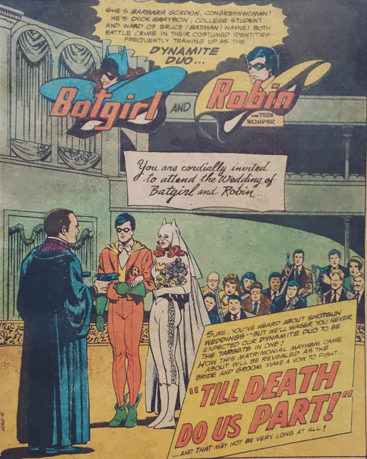 Número especial doble de 52 páginas. Robin y Batgirl son forzados a casarse. Una locura a cargo de Bob Rozakis, Curt Swan, Marshall Rogers y Carl Potts.