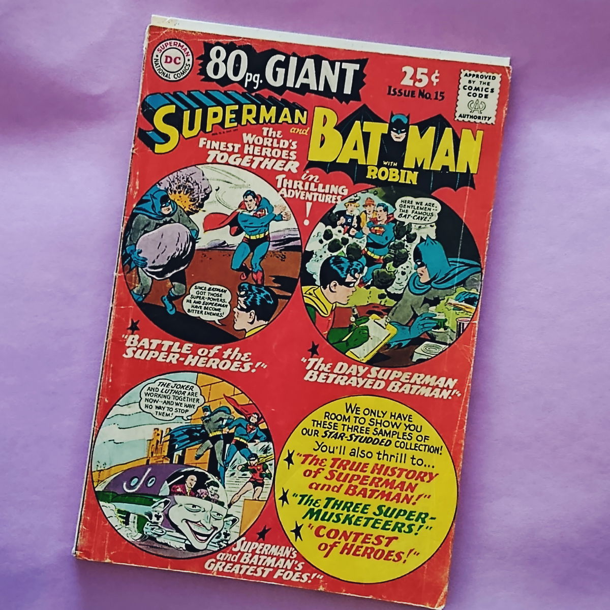 Año: 1965UsadoEn inglés.Tapa BlandaEspecial de 80 páginas que trae reprints viejos de World's Finest. Incluye: # 88, # 95 y # 97 centrados en Superman y Batman.