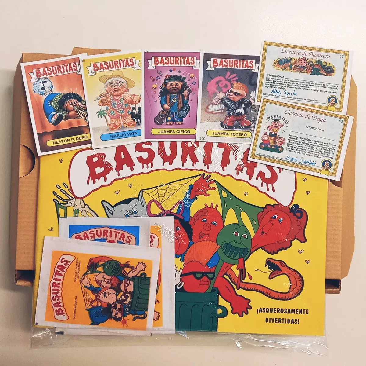 Reedición del album de figuritas clásico. Trae todas las figus para llenarlo, tres sobres cerrados con figus y dos planchas de stickers (de Basuritas y Madballs). Las figuritas son autoadhesivas.