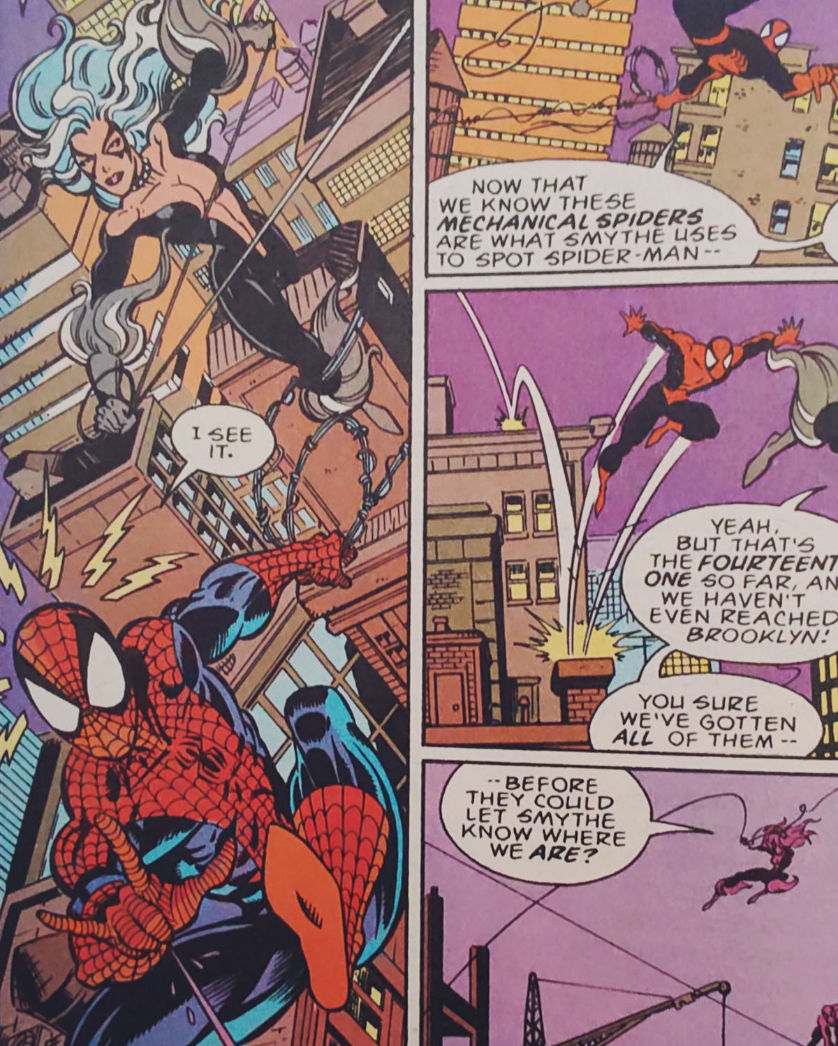 Por David Michelinie y Mark Bagley, Spidey y Black Cat vs Spider Slayers.