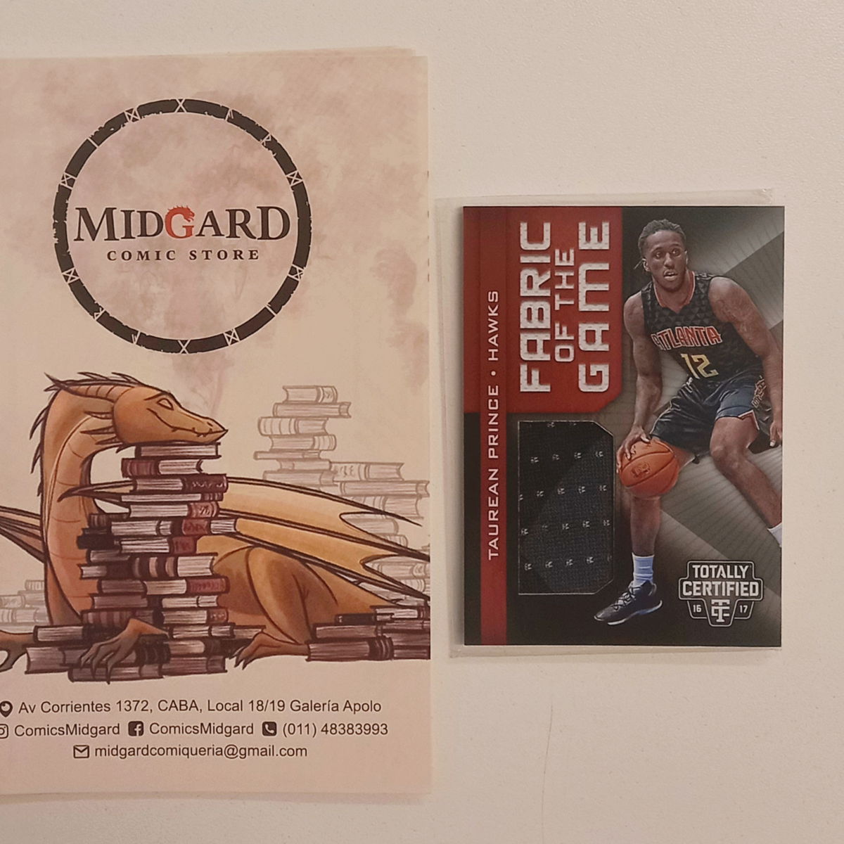 Tarjeta de Taurean Prince, insert Fabric of the Game con pedazo de jersey usado por el jugador.