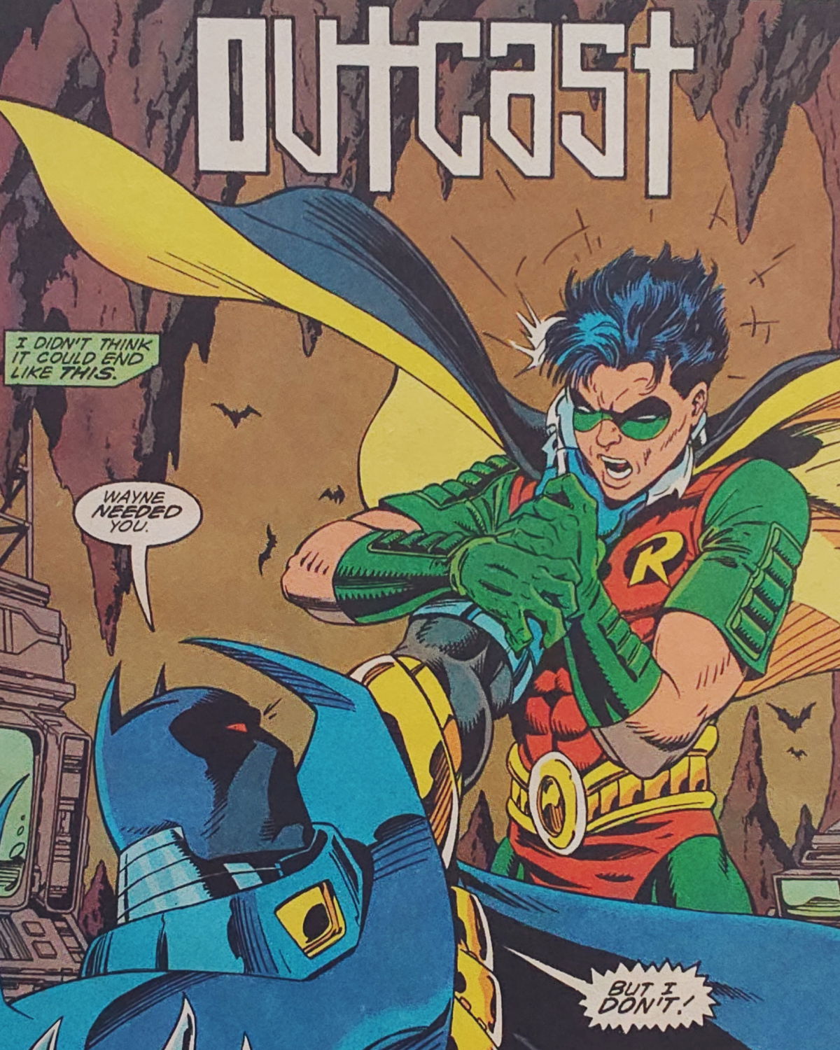Luego de los eventos de Knightfall Robin se escapa de la bati cueva con el Redbird y pone distancia con el nuevo Batman (Azrael). Portada especial metalizada.