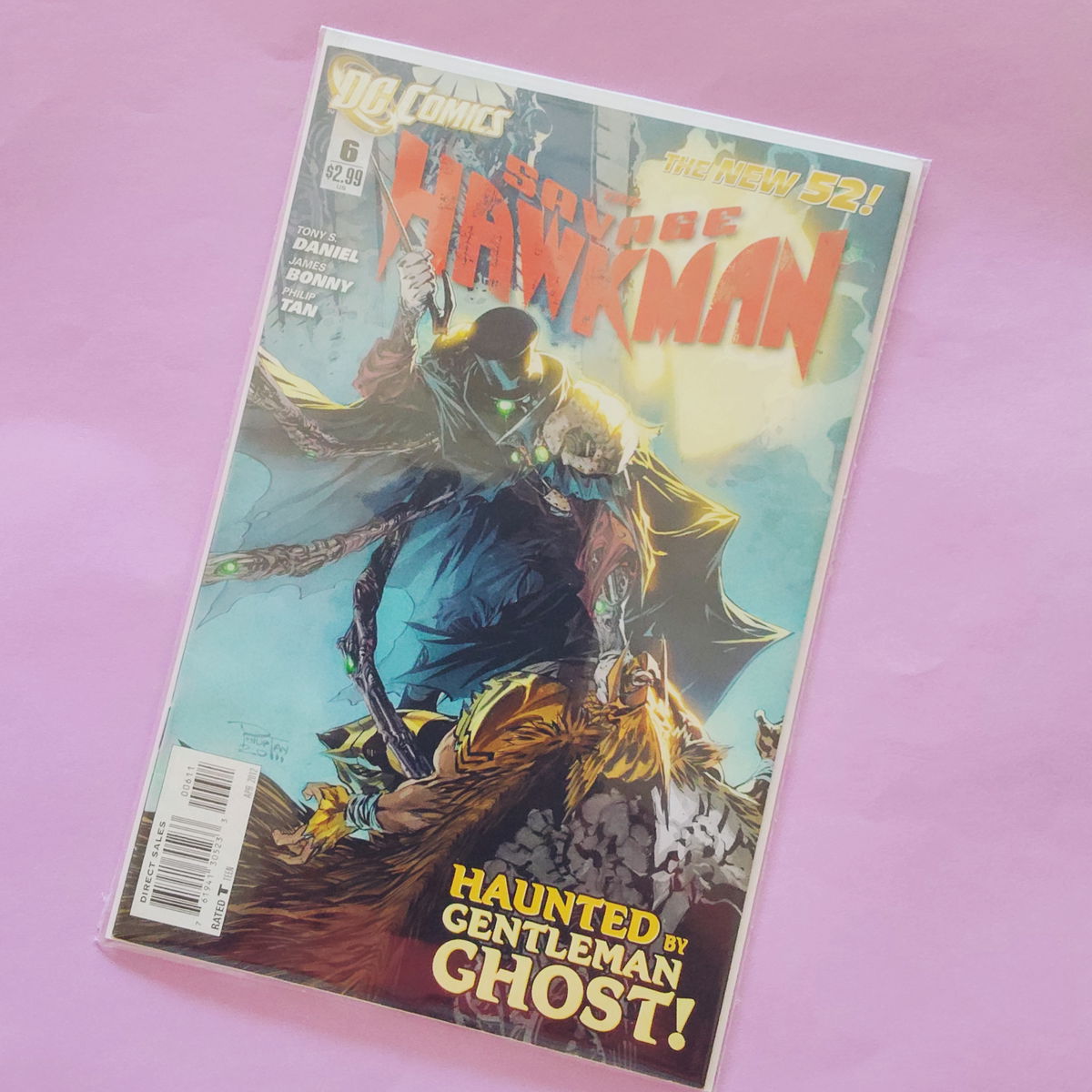Hawkman se enfrenta a uno de mis villanos favoritos: el Gentleman Ghost. Por Tony Daniel y Philip Tan.
