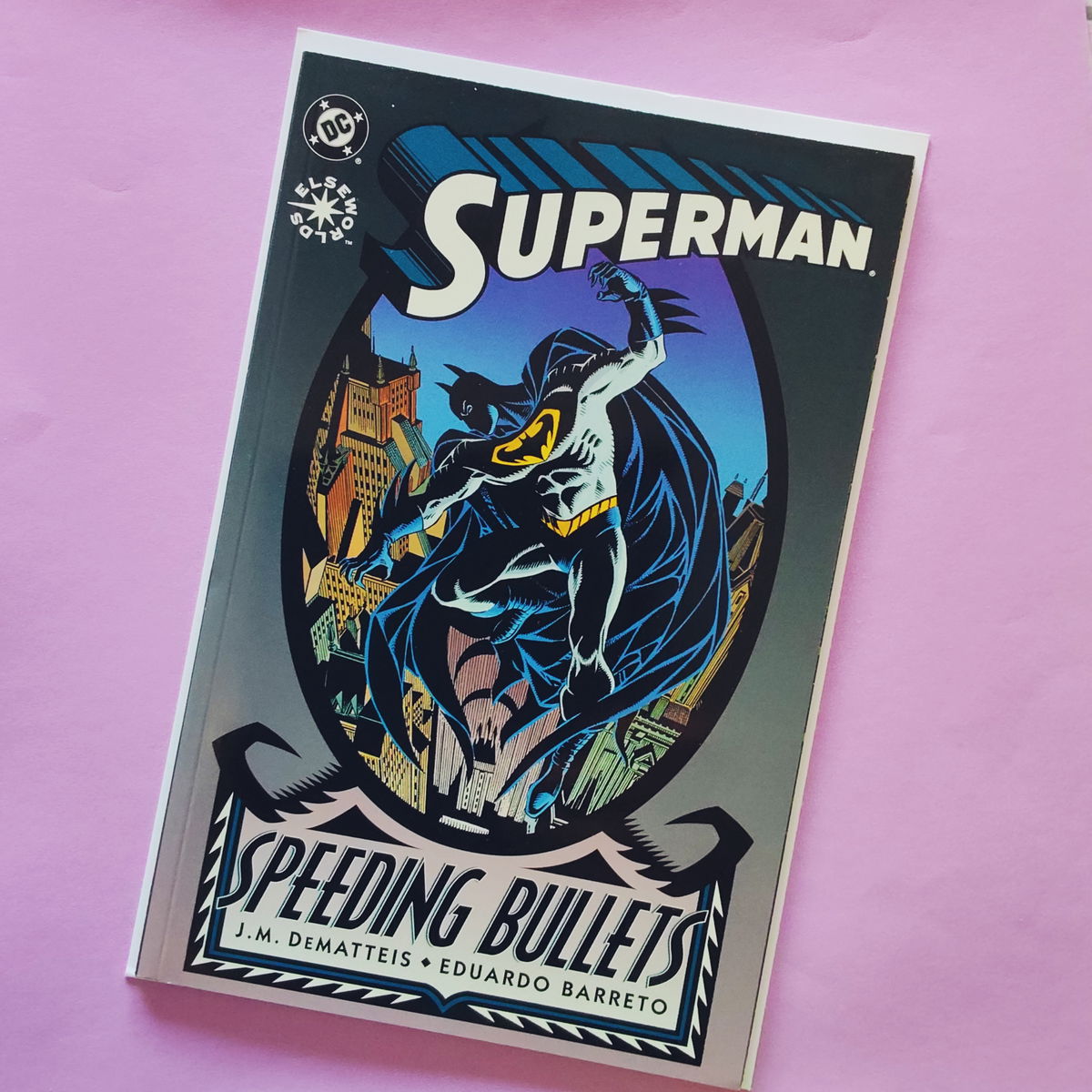 Elseworld, tomo único que plantea un mundo diferente donde Kal El es encontrado y criado por los Wayne, pero luego de ser asesinados en Gotham aparece un nuevo vigilante con super poderes.